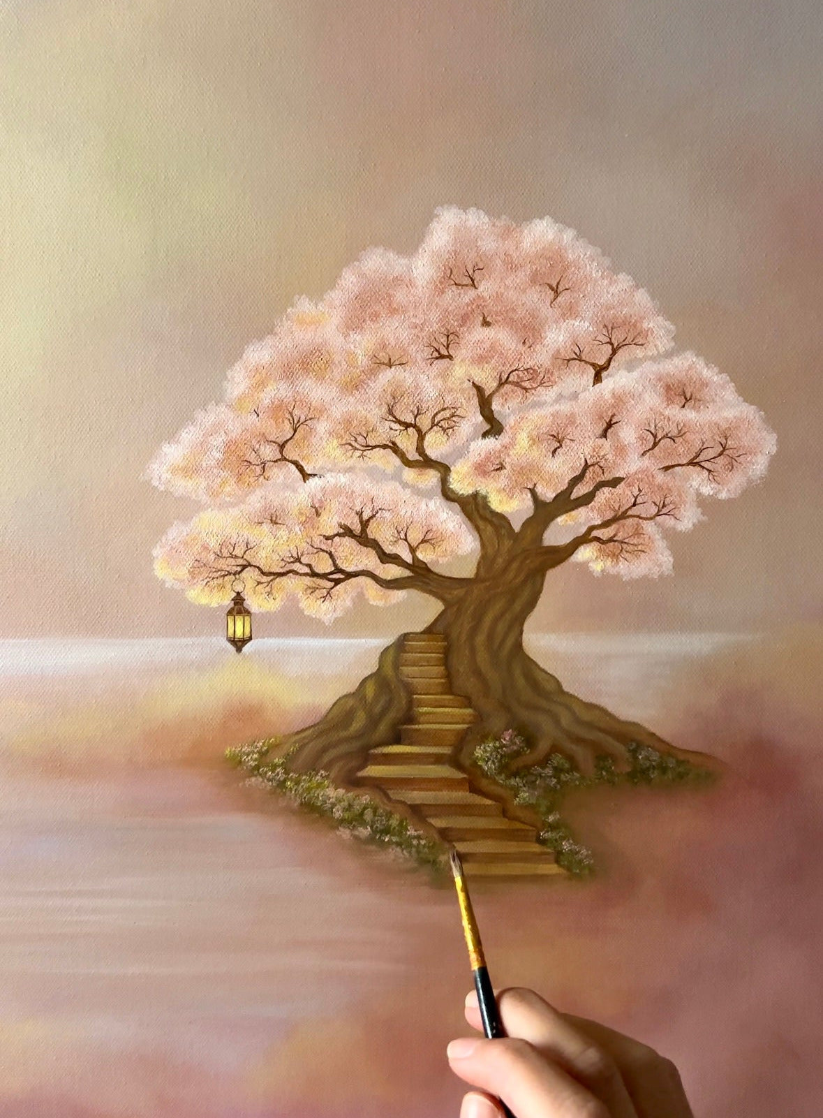 This piece is a gentle, atmospheric landscape that captures the quiet magic of early morning light, bringing warmth, serenity, and a touch of wonder to any corner of your home.