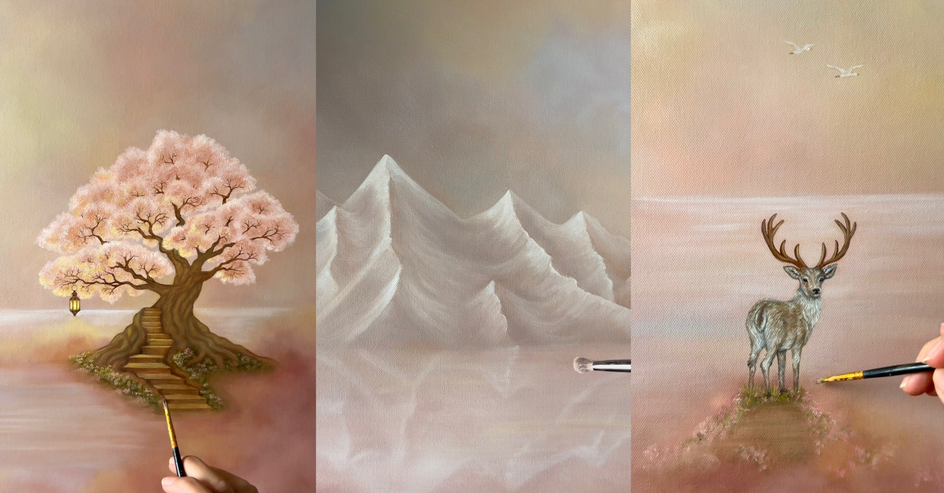 This painting is a soft, atmospheric piece that blends a dreamlike landscape with a sense of quiet strength, designed to bring calm, elegance, and a subtle narrative into your space.
