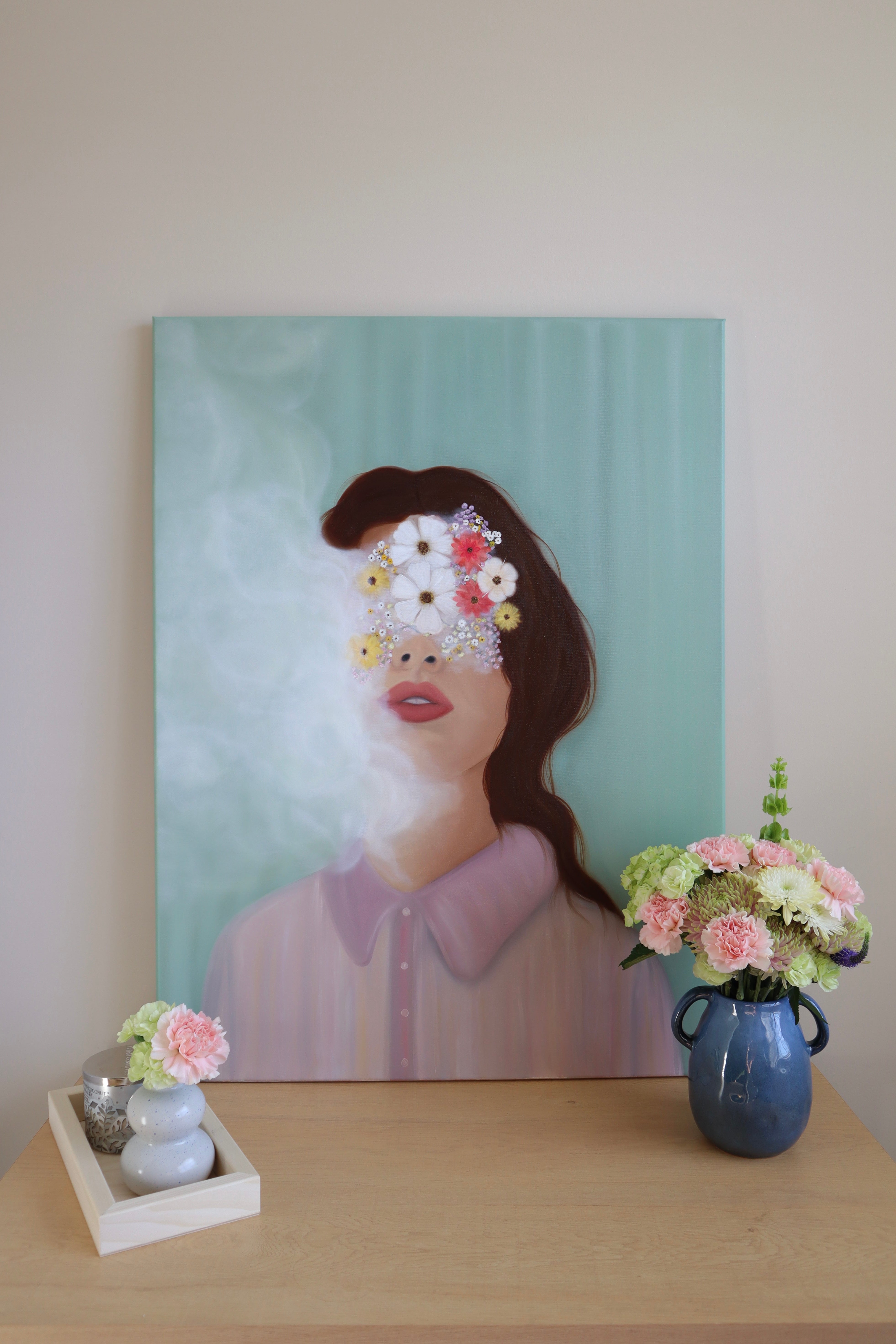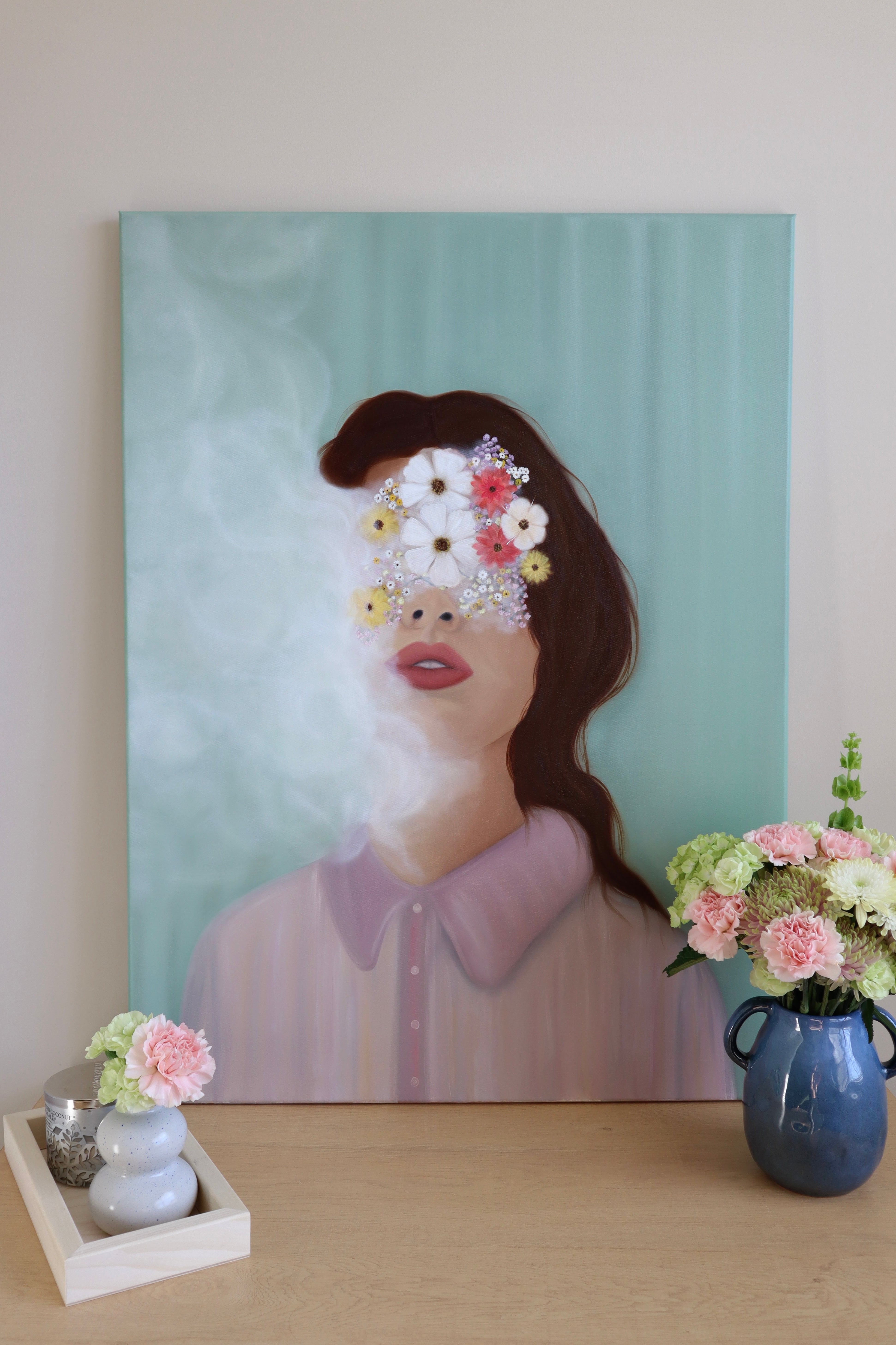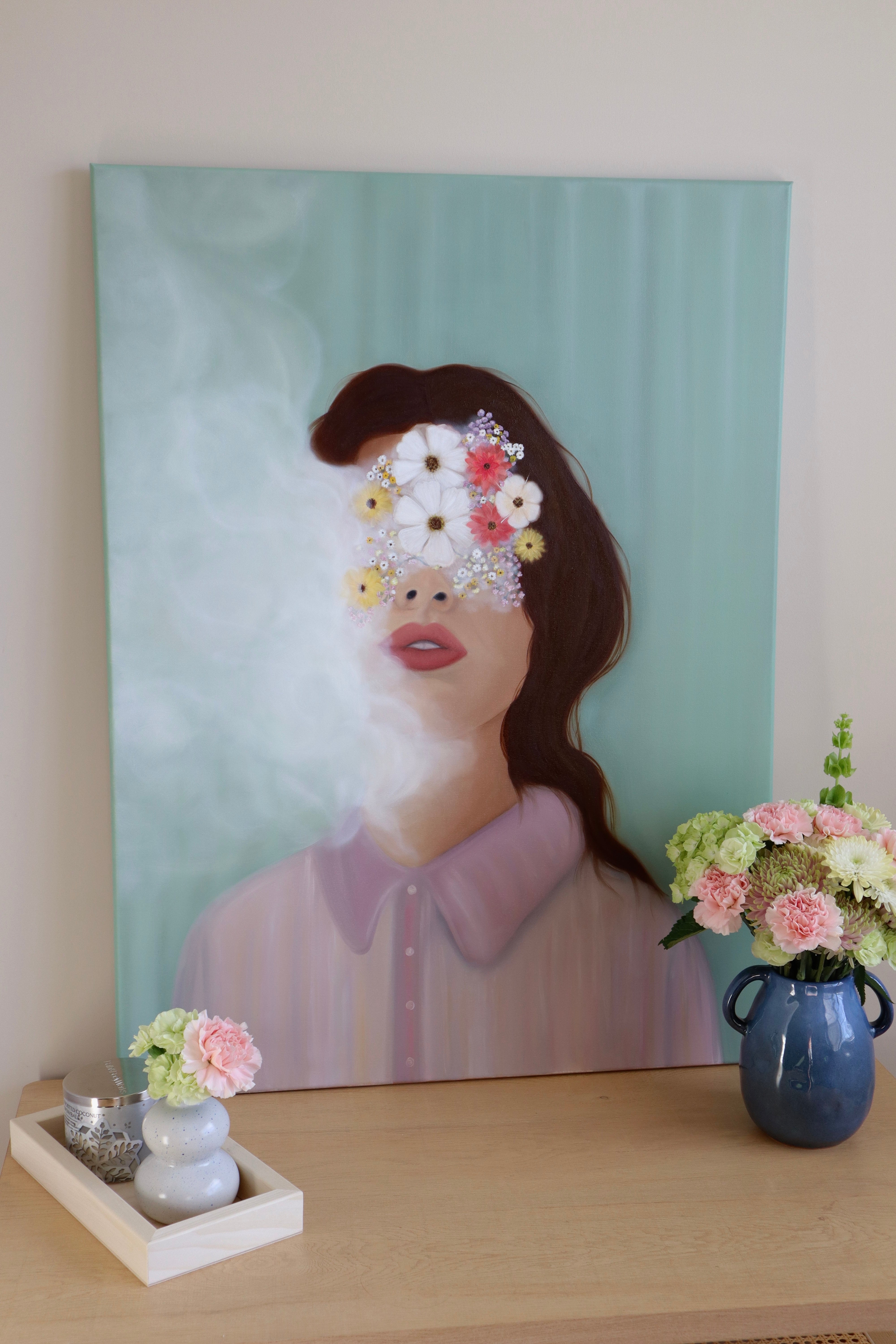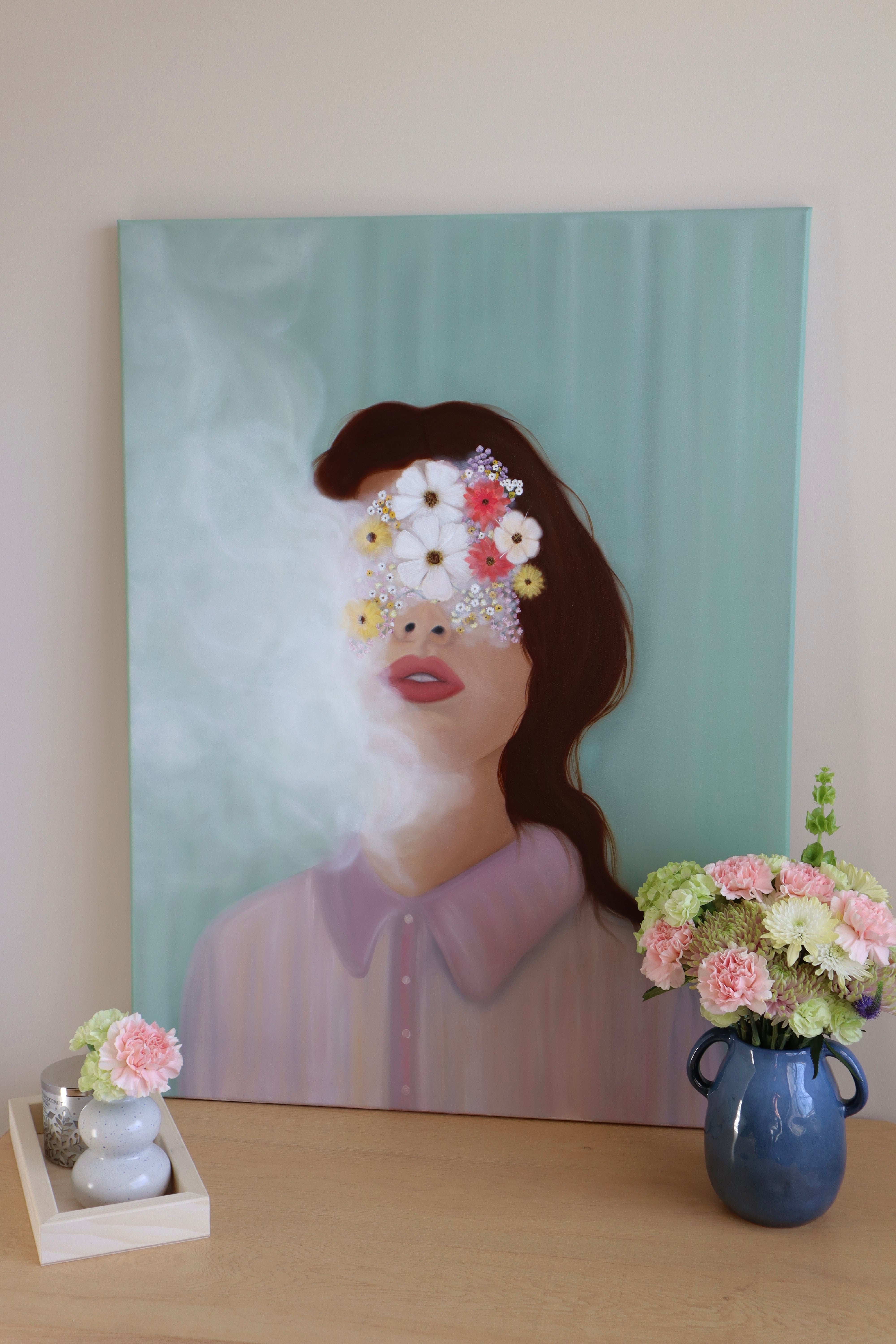 Description:"Through the Mist" represents the mystery and beauty that every woman holds within. The mist covering her face symbolizes the stories we carry but don’t always reveal, while the flowers represent how we grow and define ourselves over time. It’s a piece that invites introspection and a deeper appreciation for the unseen layers of our identity.