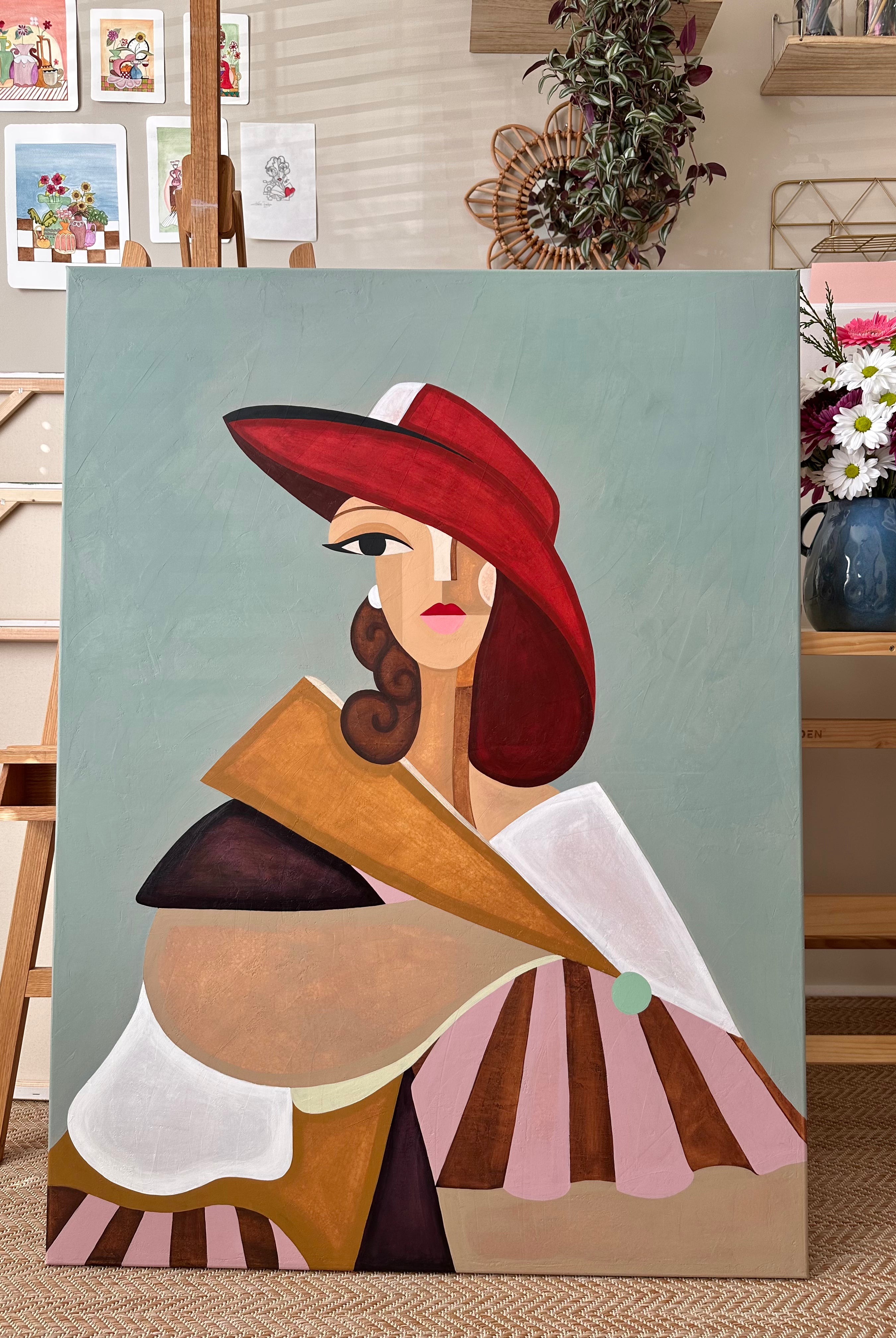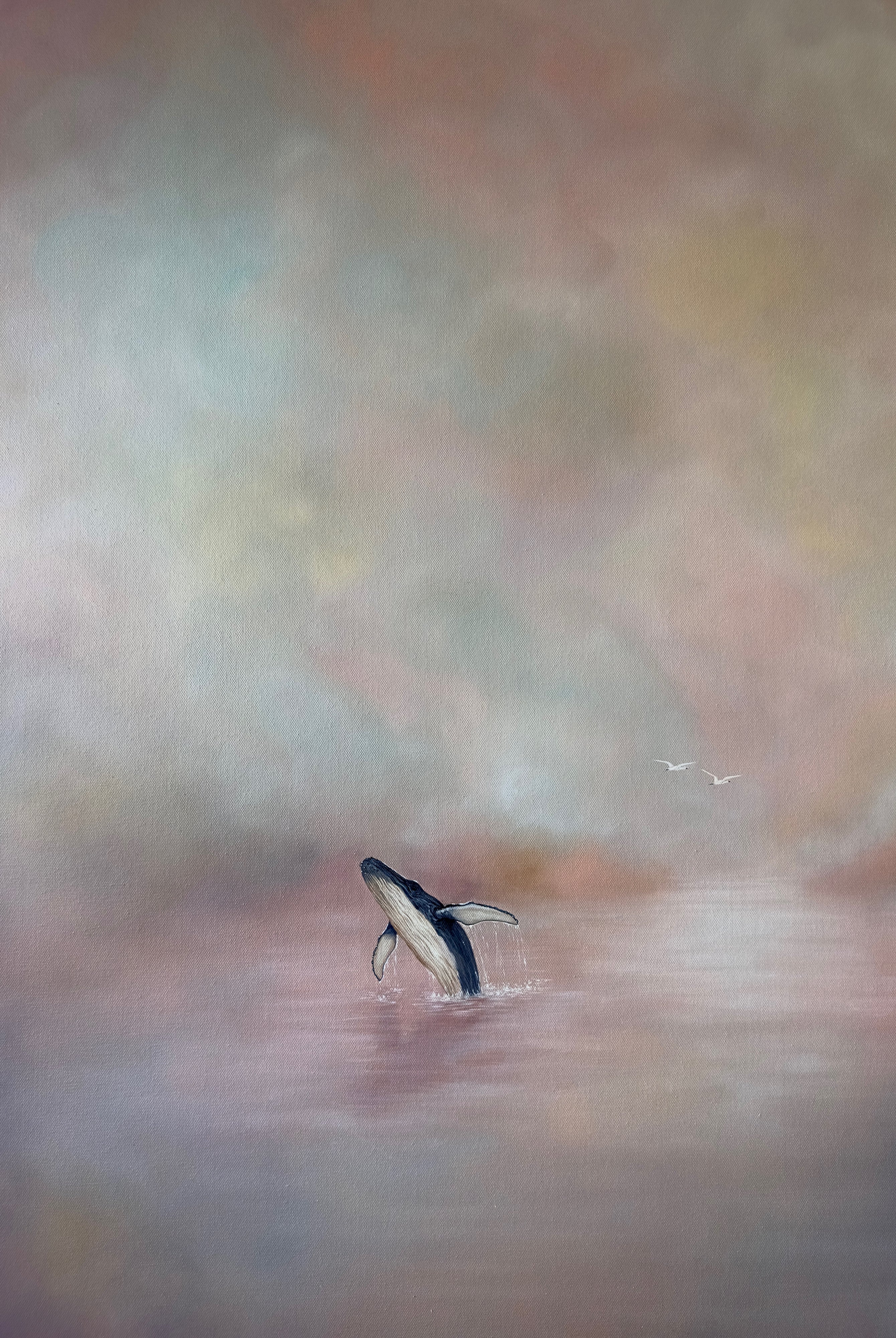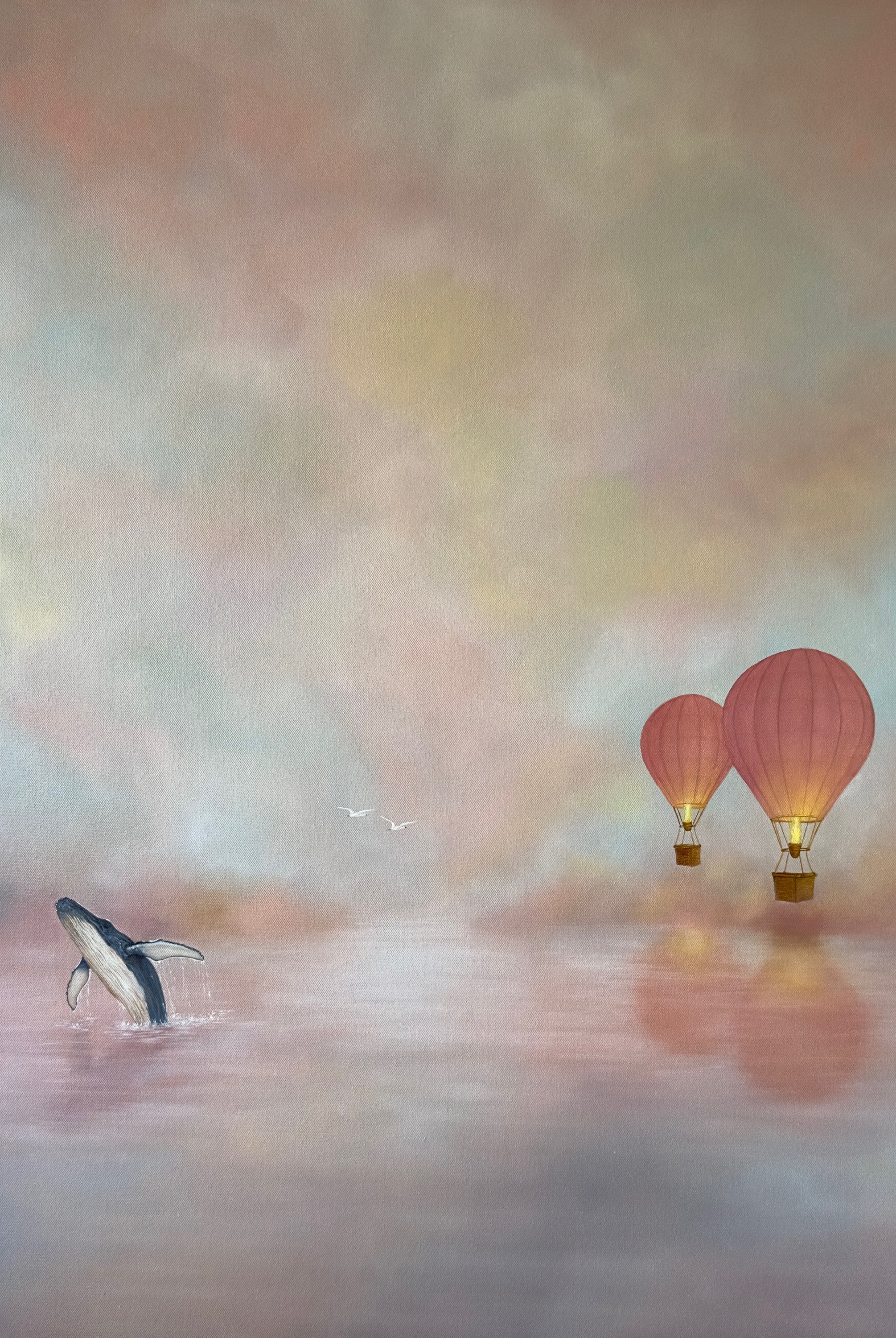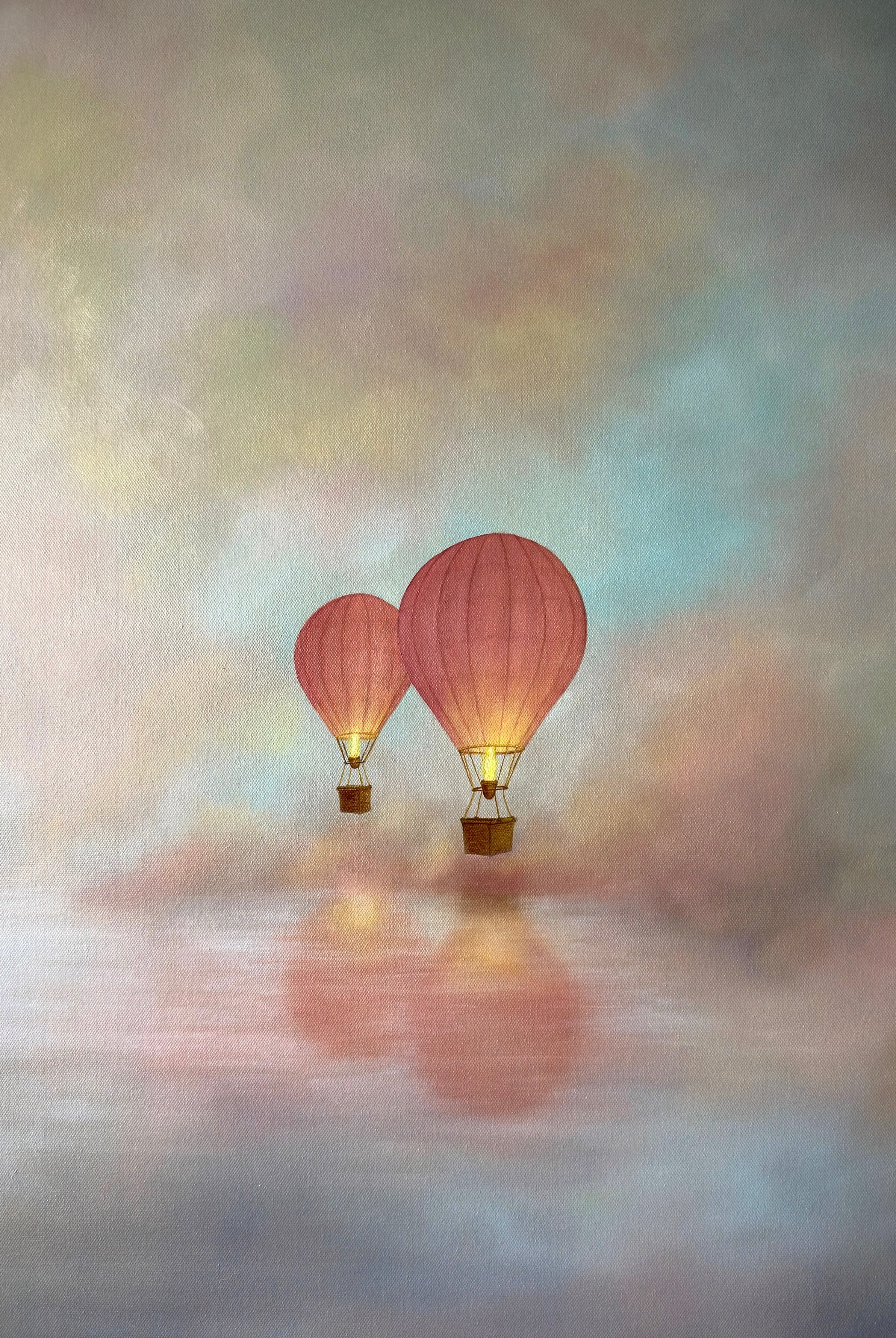 This painting is a soft, atmospheric piece that blends a dreamlike landscape with a sense of quiet strength, designed to bring calm, elegance, and a subtle narrative into your space.