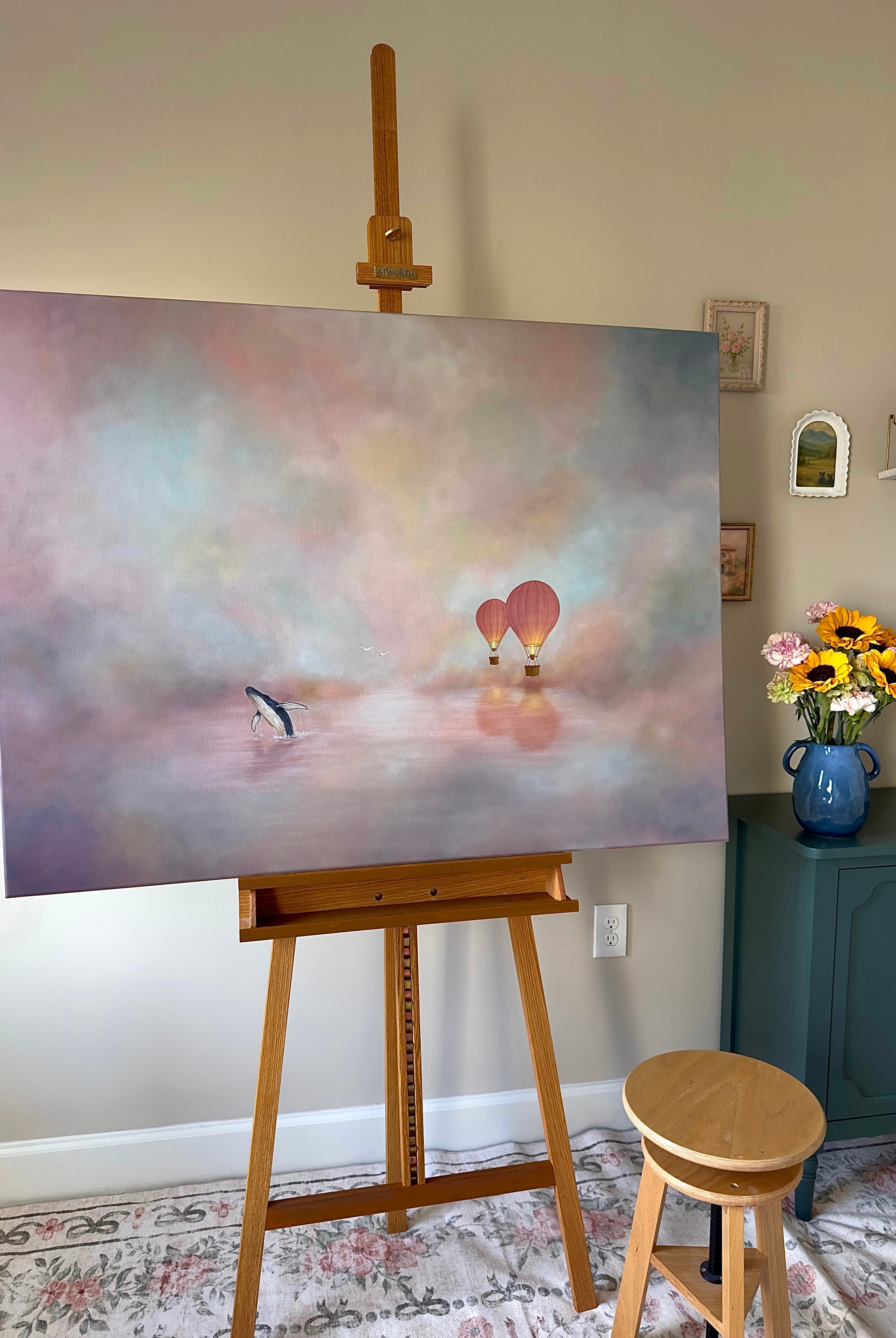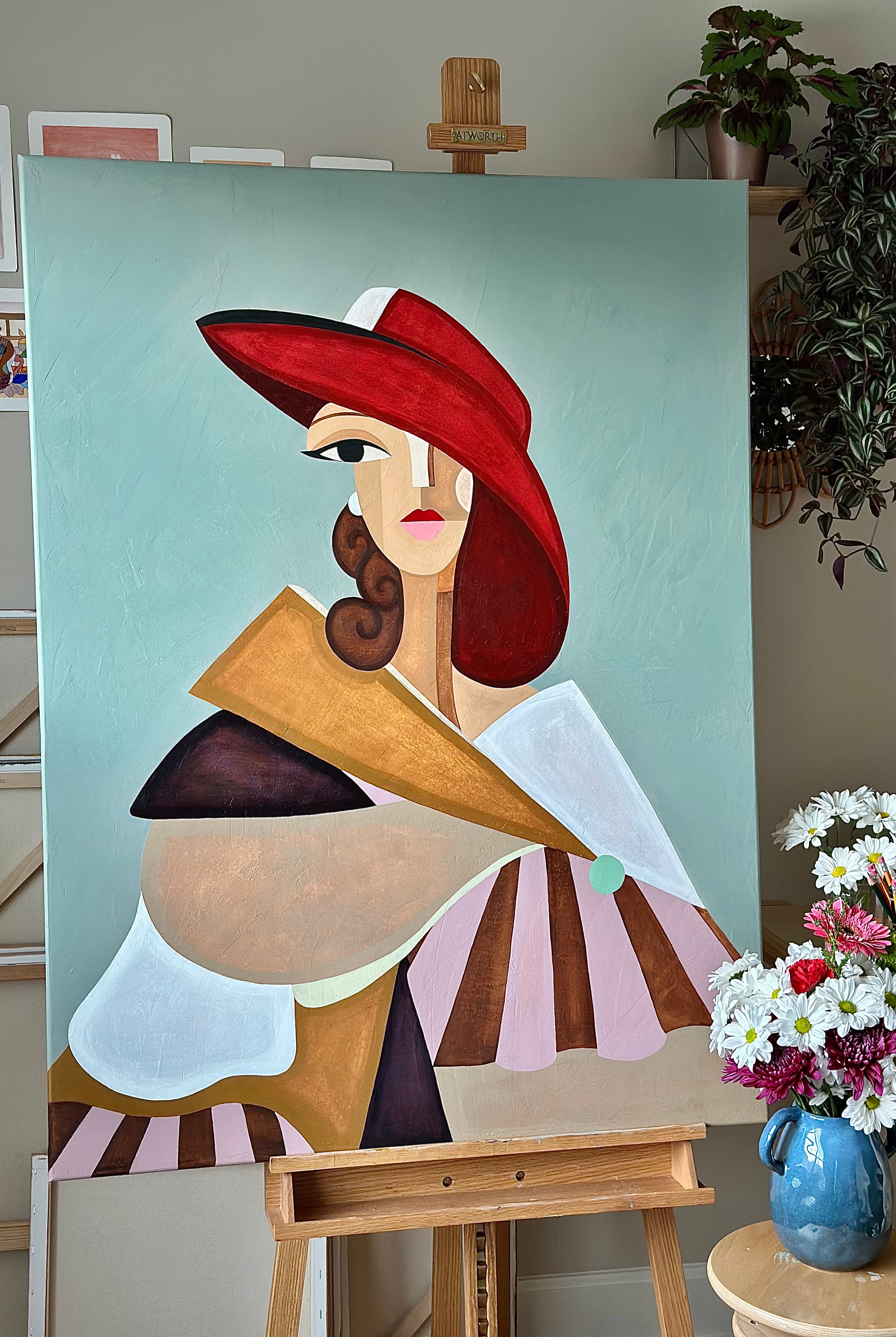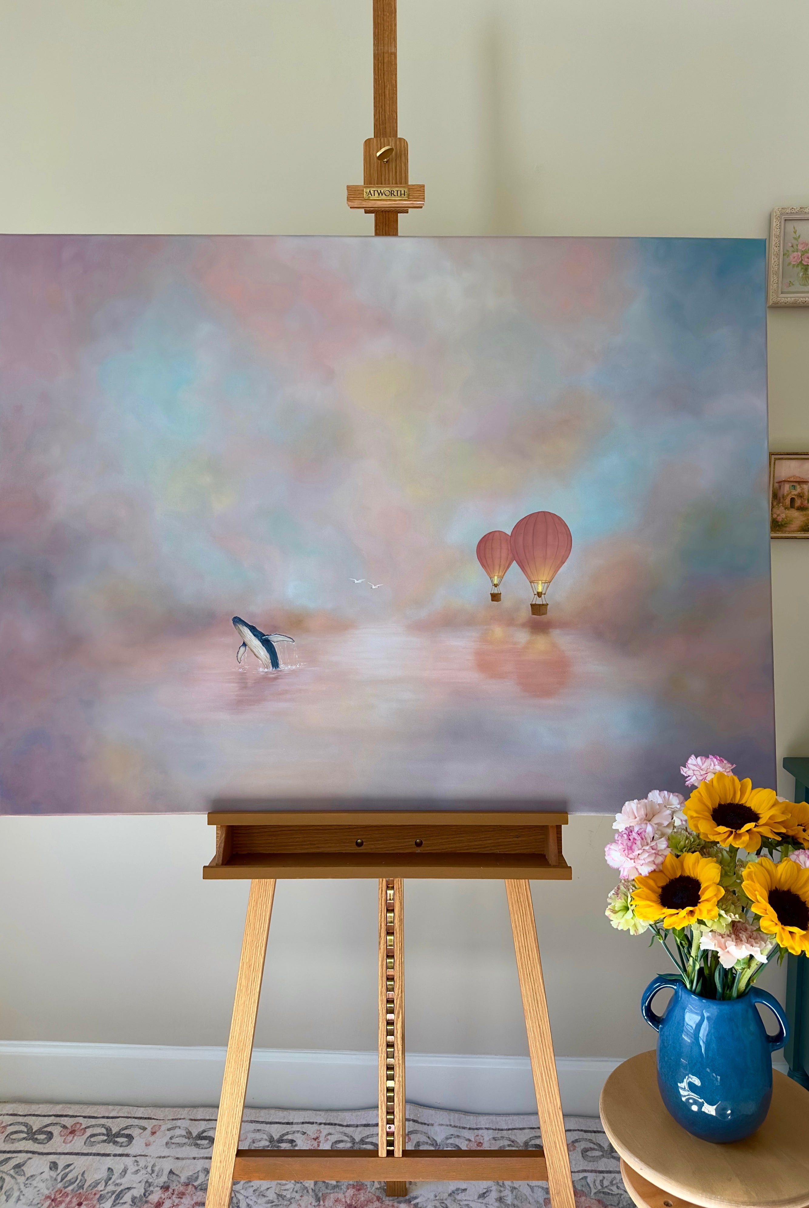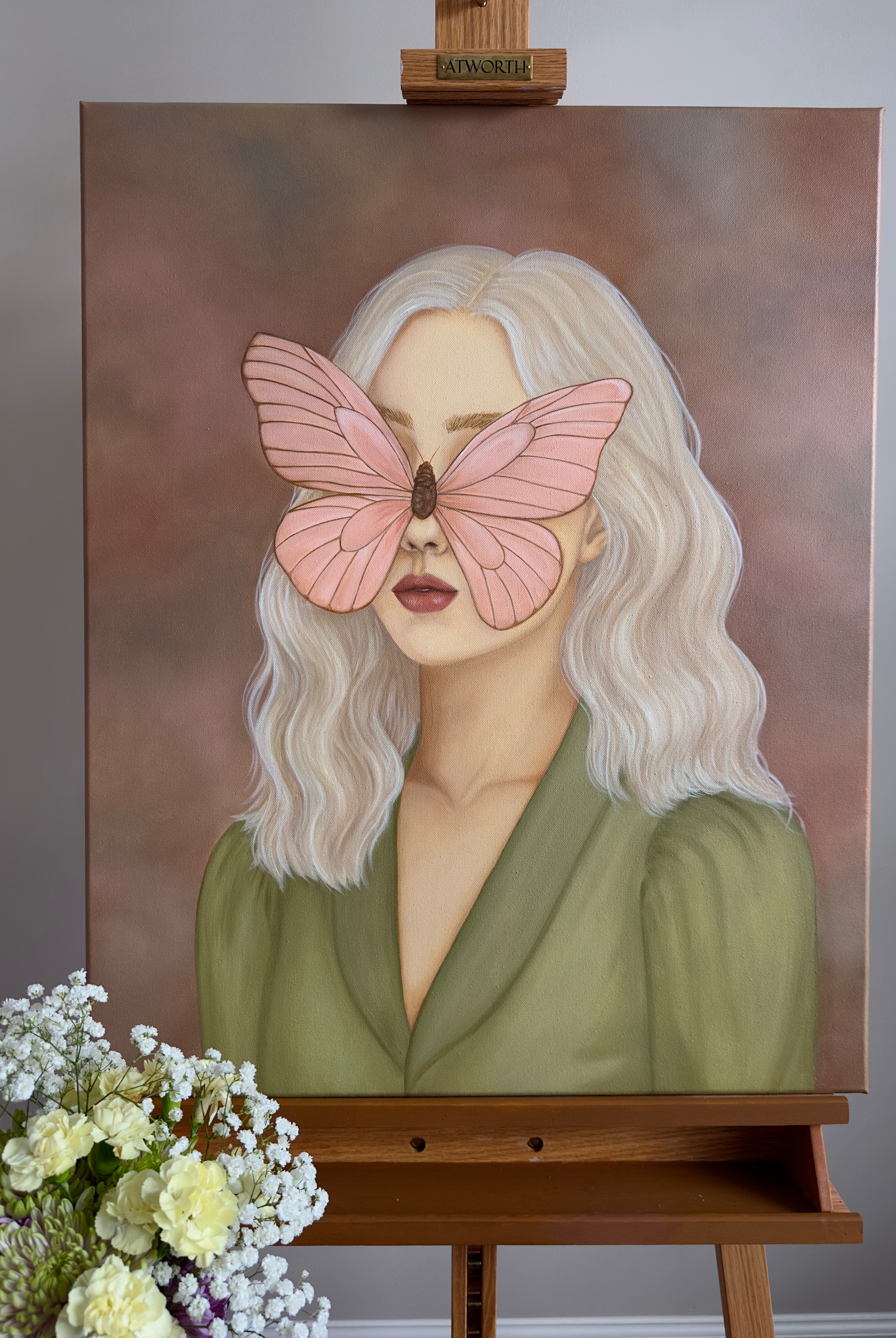 This painting is a soft, atmospheric piece that blends a dreamlike landscape with a sense of quiet strength, designed to bring calm, elegance, and a subtle narrative into your space.