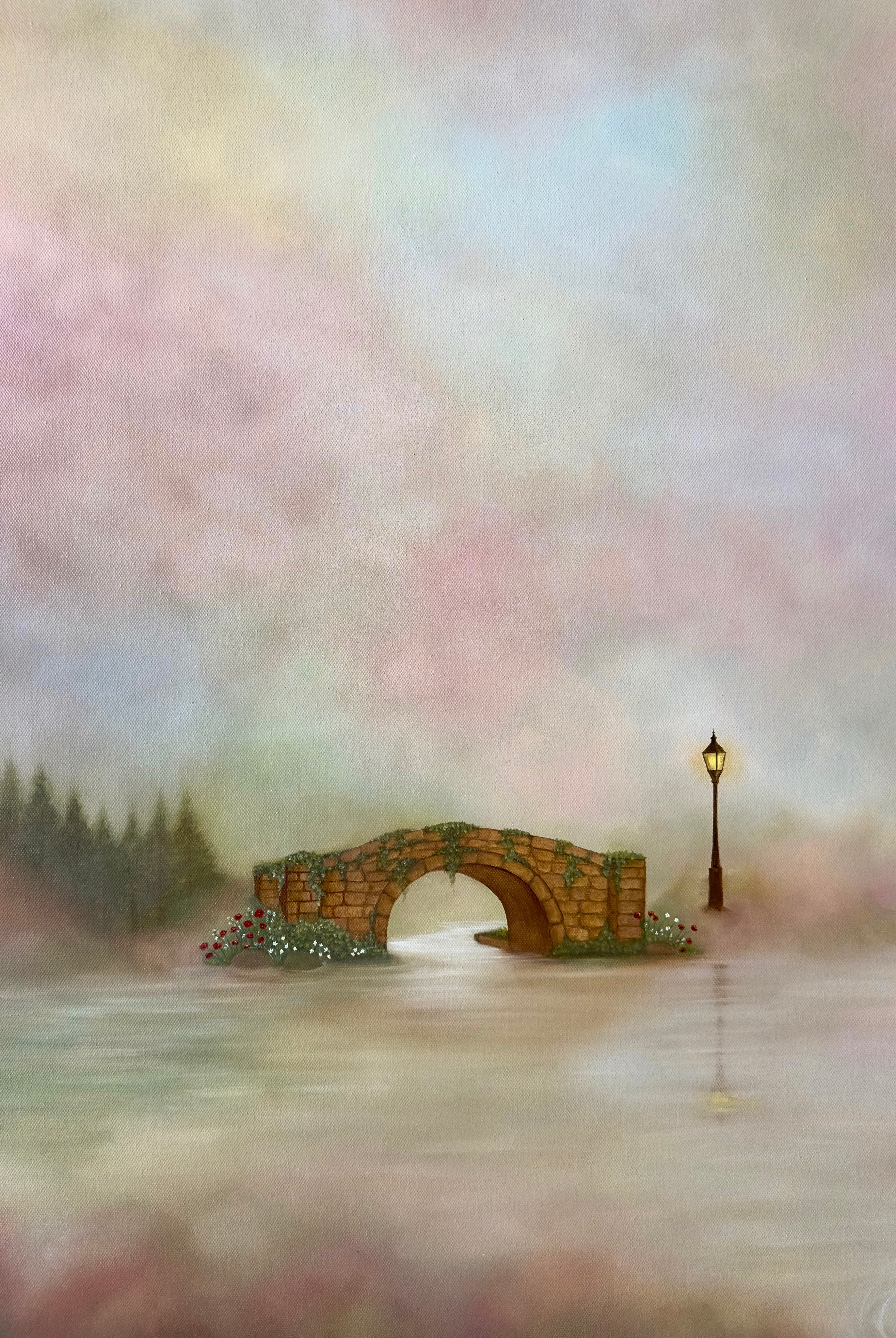This piece is a gentle, atmospheric landscape that captures the quiet magic of early morning light, bringing warmth, serenity, and a touch of wonder to any corner of your home.